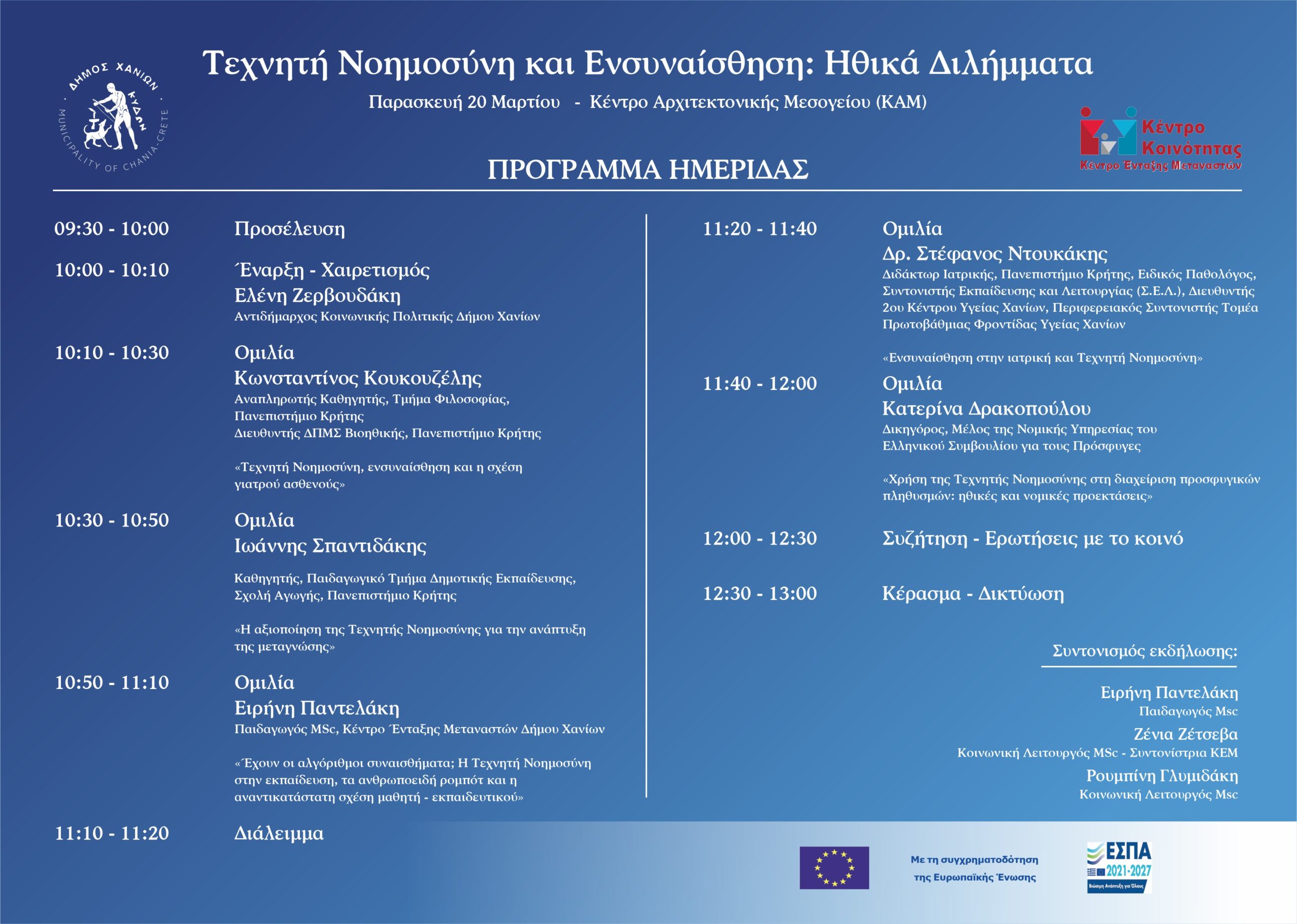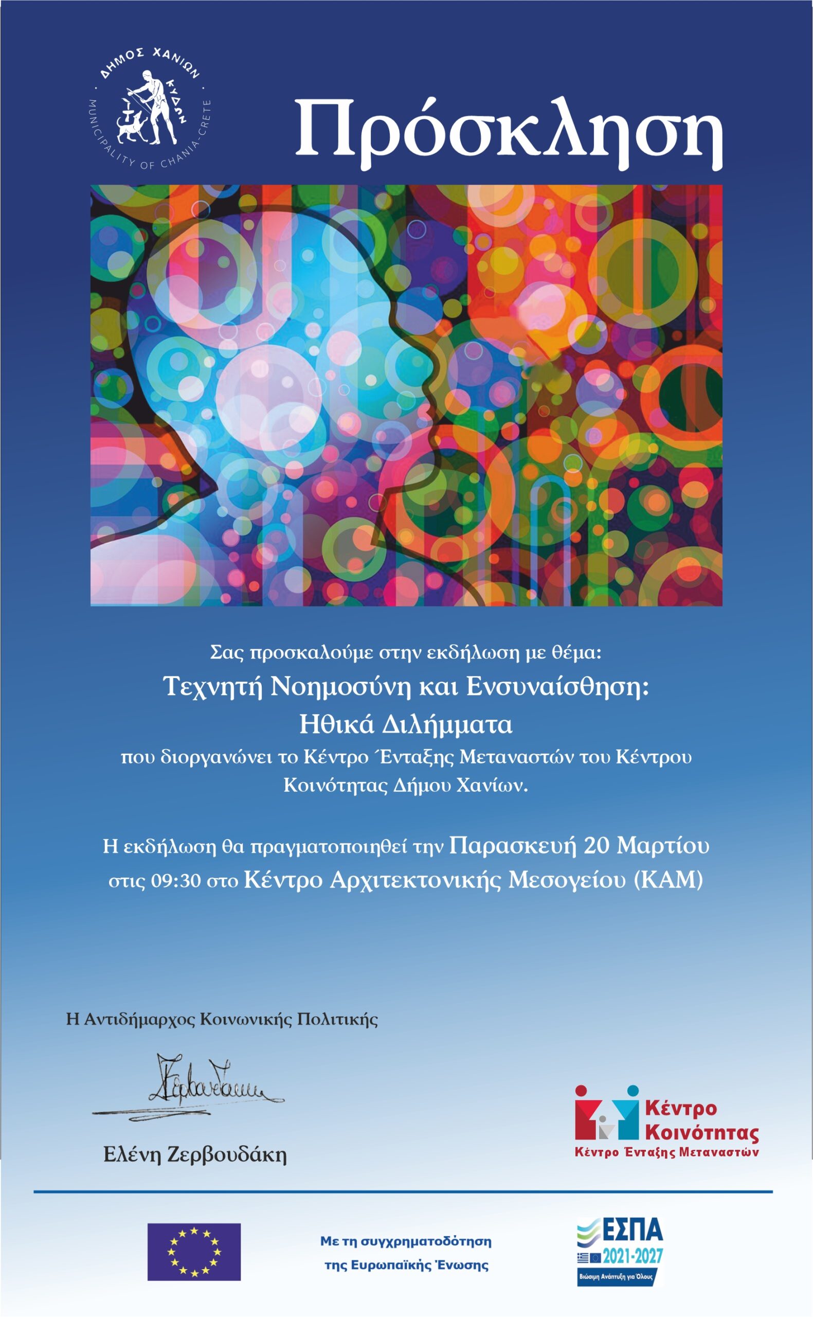 Ημερίδα Κέντρου Αρχιτεκτονικής Μεσογείου (ΚΑΜ) με θέμα “Τεχνητή Νοημοσύνη και Ενσυναίσθηση: Ηθικά Διλήμματα”, Παρασκευή 20 Μαρτίου 9:30 π.μ.